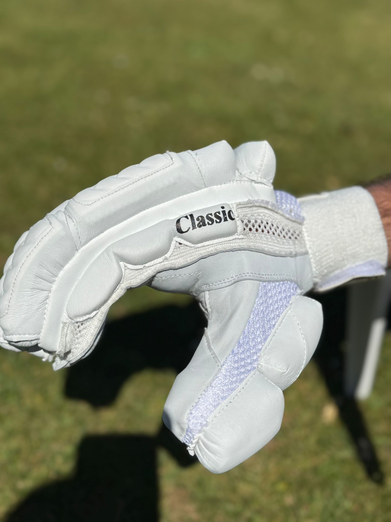A pair of batting gloves made to test match quality, these gloves are some of the best in the Kraze range. Designed to ensure a comfortable fit and high levels of protection on the fingers so that you can play with no limits. Available as left or right handed options. The Premium Test Gloves also have additional protection on the ends of the fingers to help protect against staving and broken fingers.